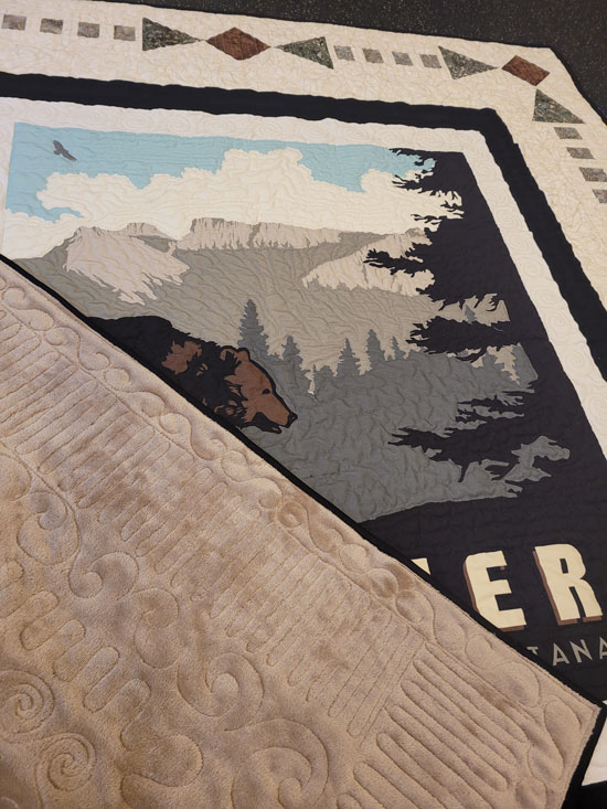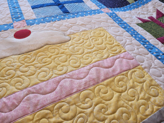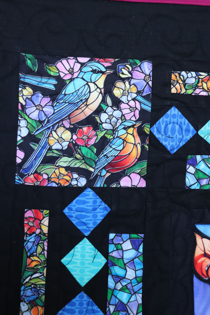 This was a fun panel that I whipped up and did a lot of detailed quilting the panel part.